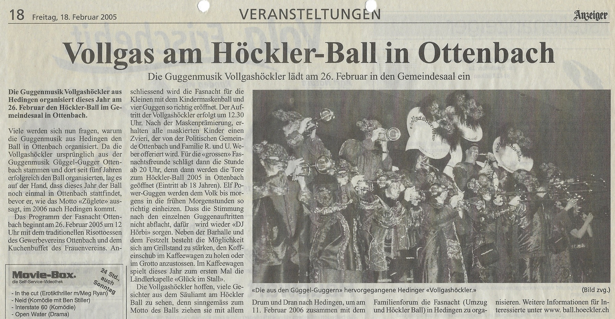 Freitag, 18. Februar 2005 - Bericht im Anzeiger aus dem Bezirk Affoltern