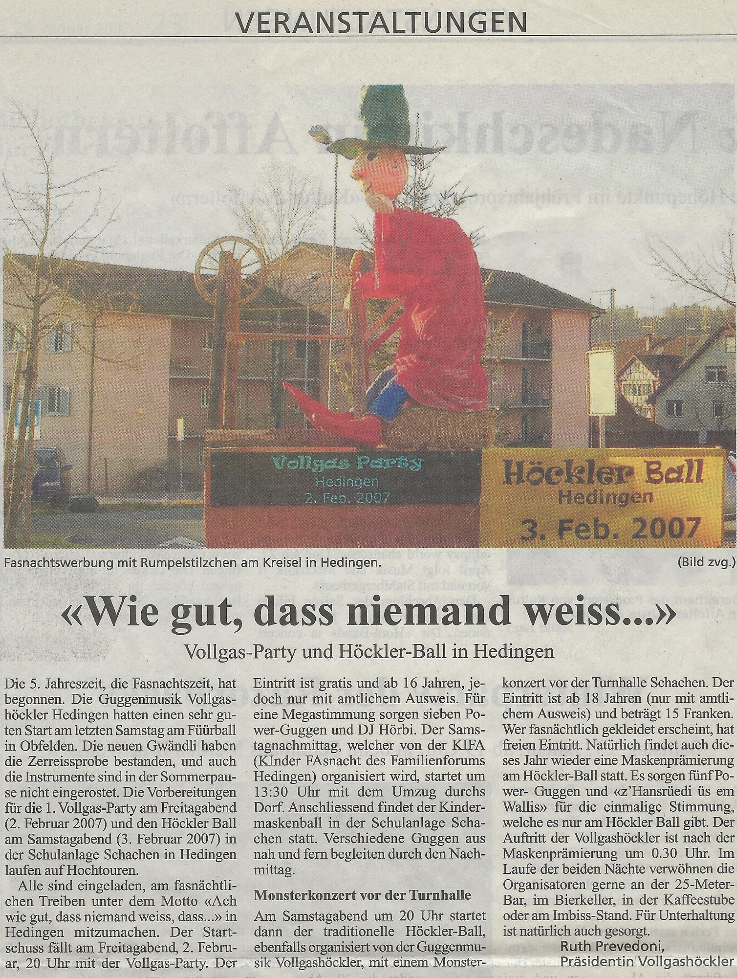 Freitag, 26. Januar 2007 - Bericht im Anzeiger aus dem Bezirk Affoltern