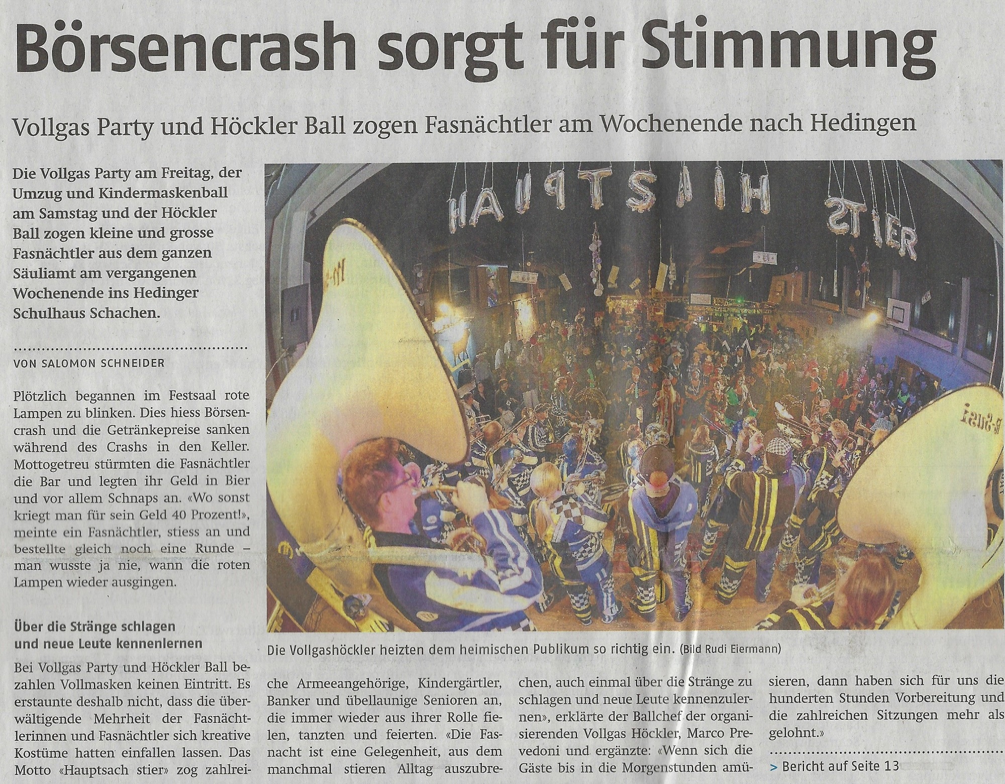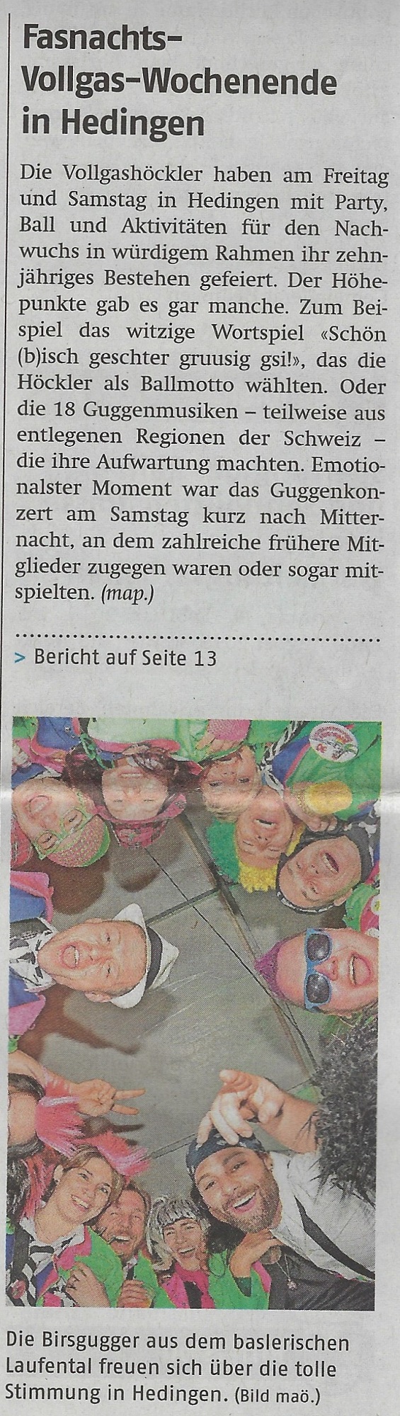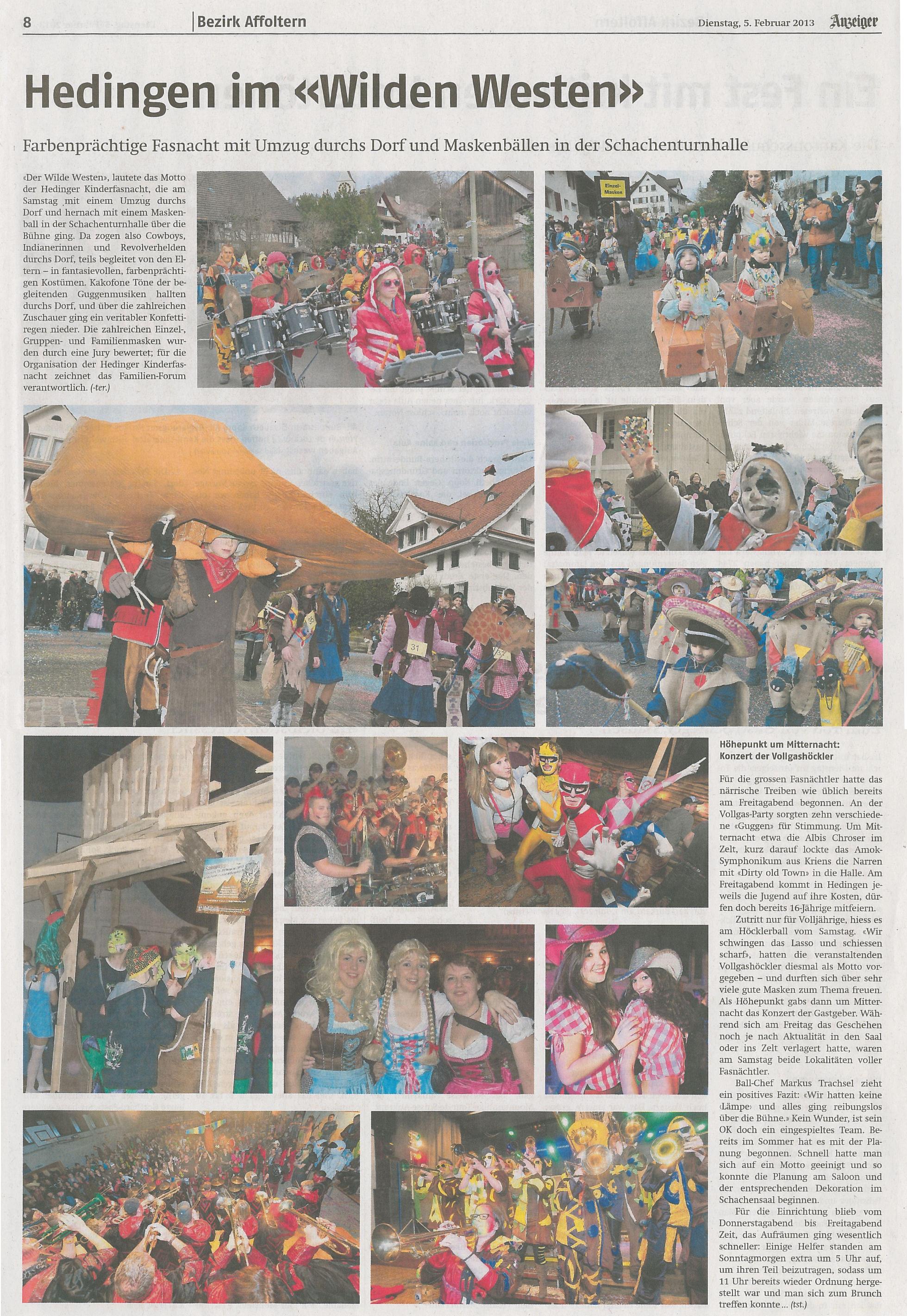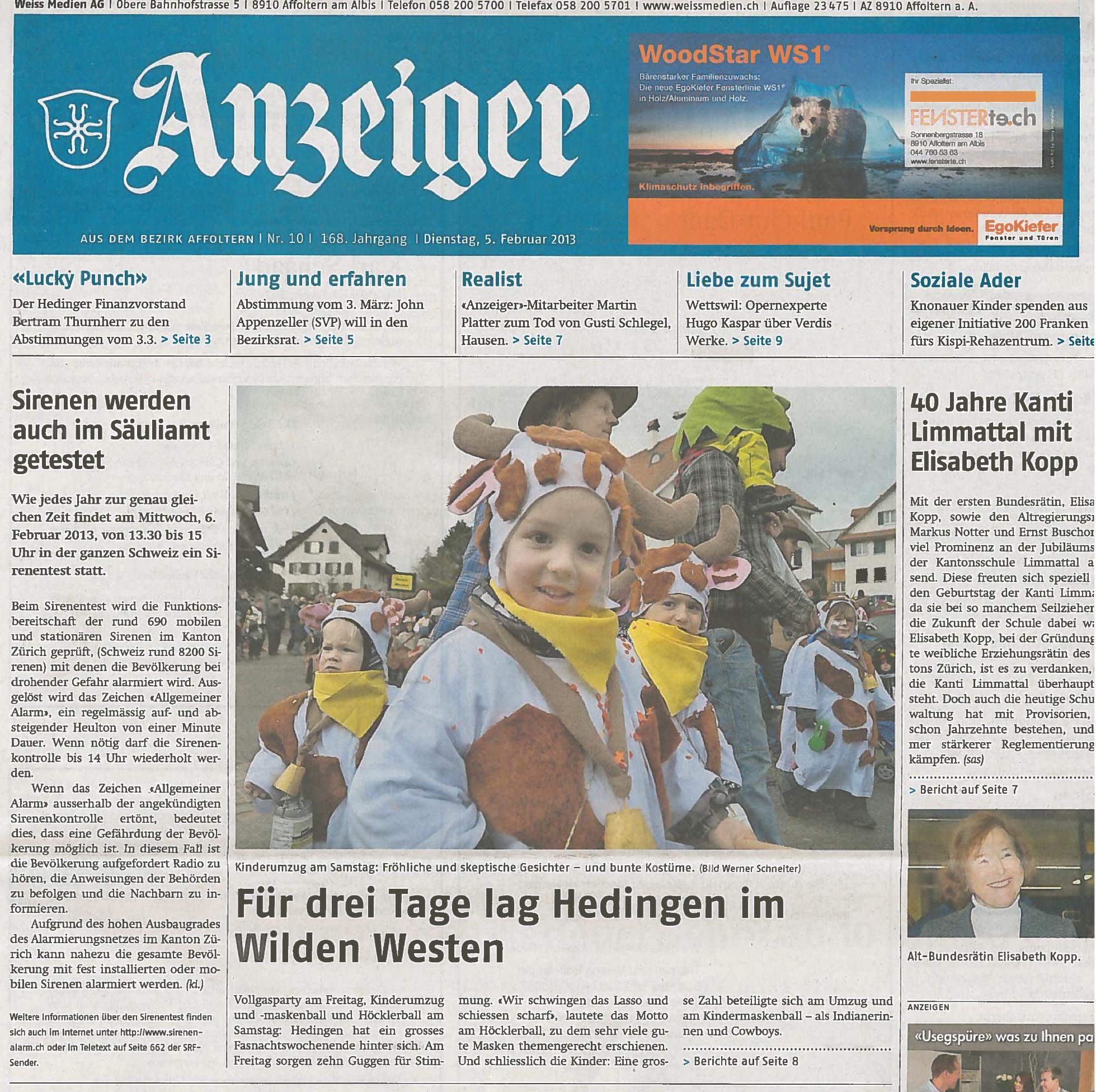 Dienstag, 6. Februar 2013 - Bericht im Anzeiger aus dem Bezirk Affoltern