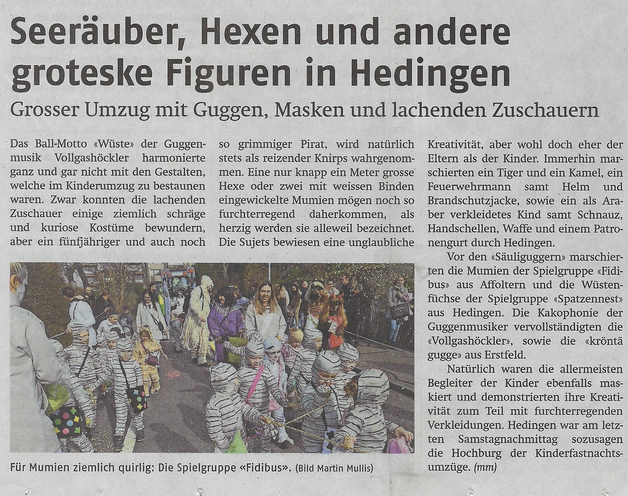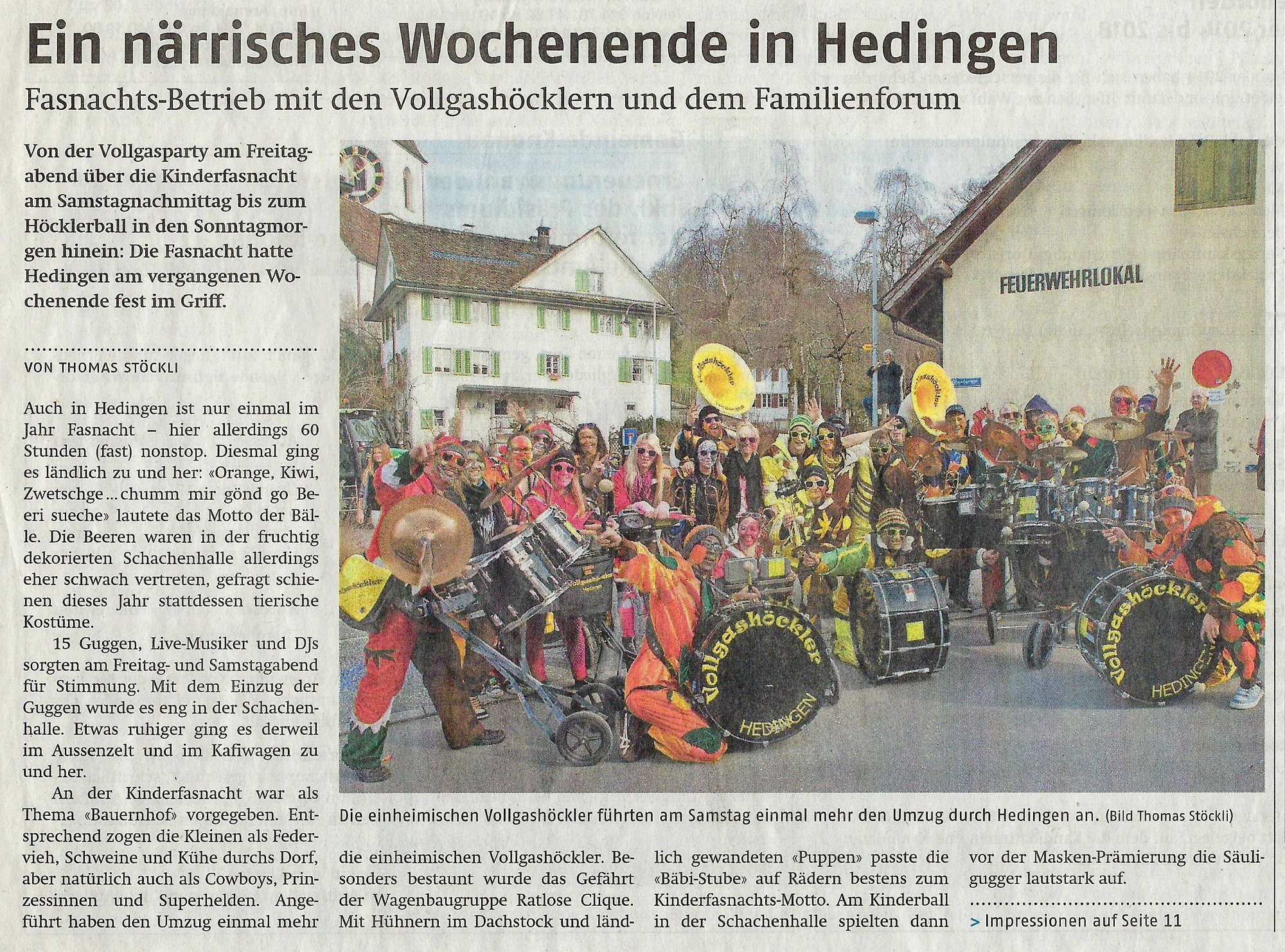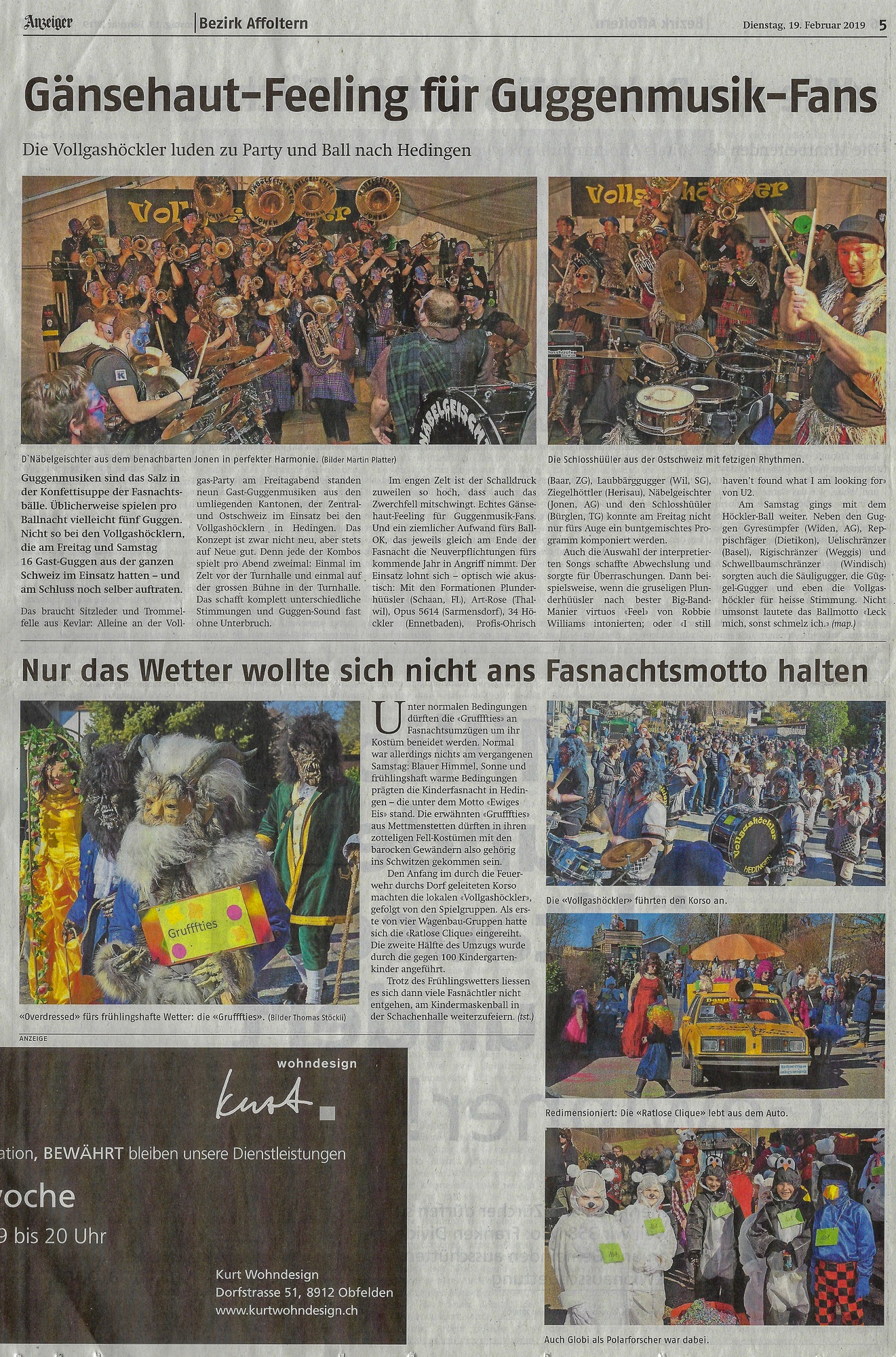 Dienstag, 19. Februar 2019 - Bericht im Anzeiger aus dem Bezirk Affoltern