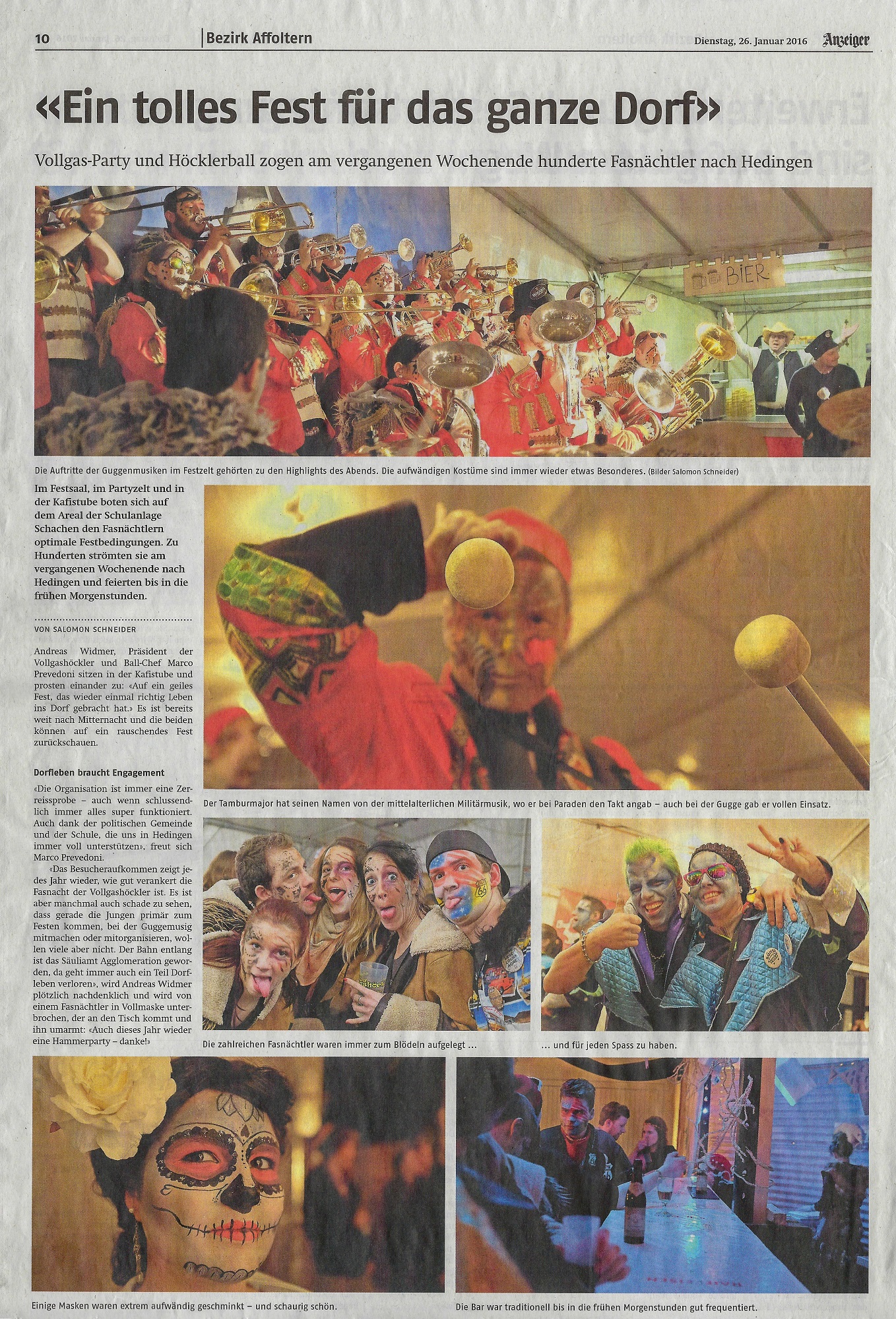 Dienstag, 26. Januar 2016 - Bericht im Anzeiger aus dem Bezirk Affoltern