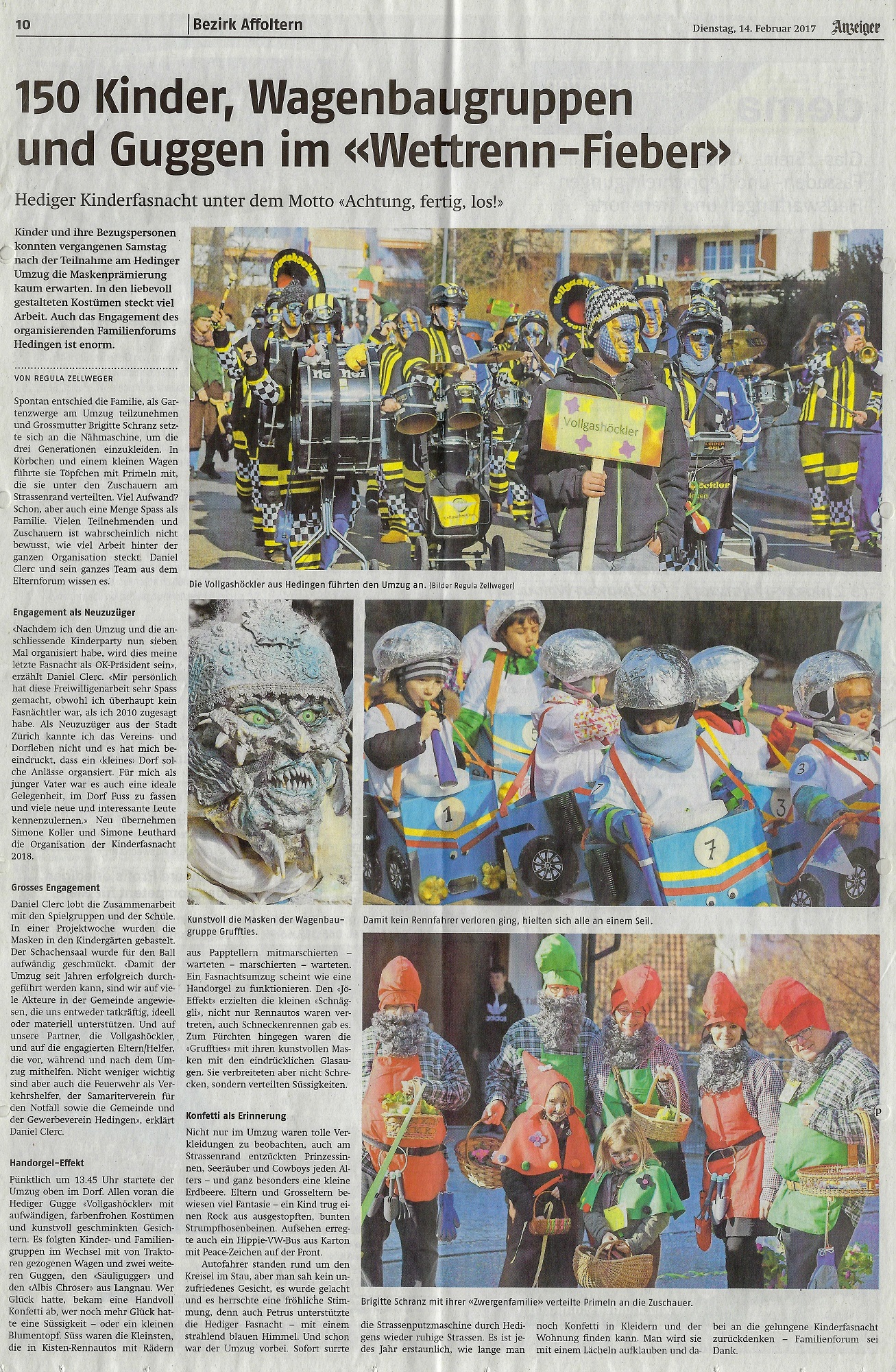 Dienstag, 14. Februar 2017 - Bericht im Anzeiger aus dem Bezirk Affoltern