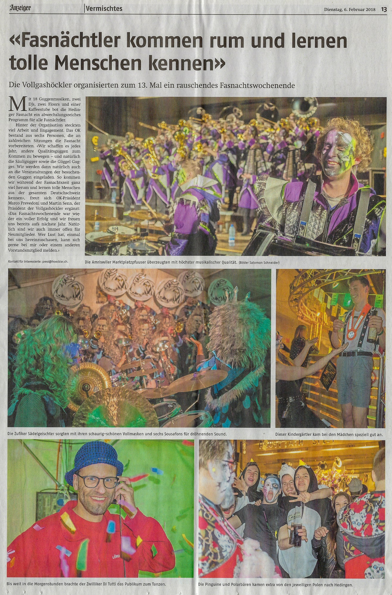 Dienstag, 6. Februar 2018 - Bericht im Anzeiger aus dem Bezirk Affoltern
