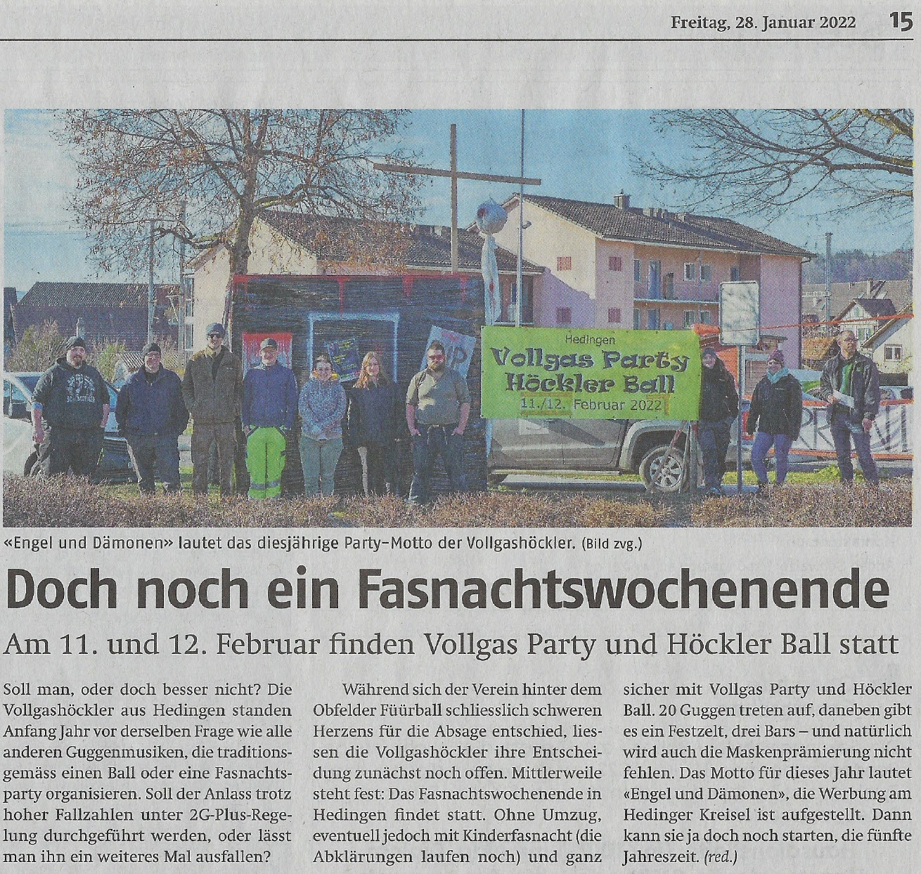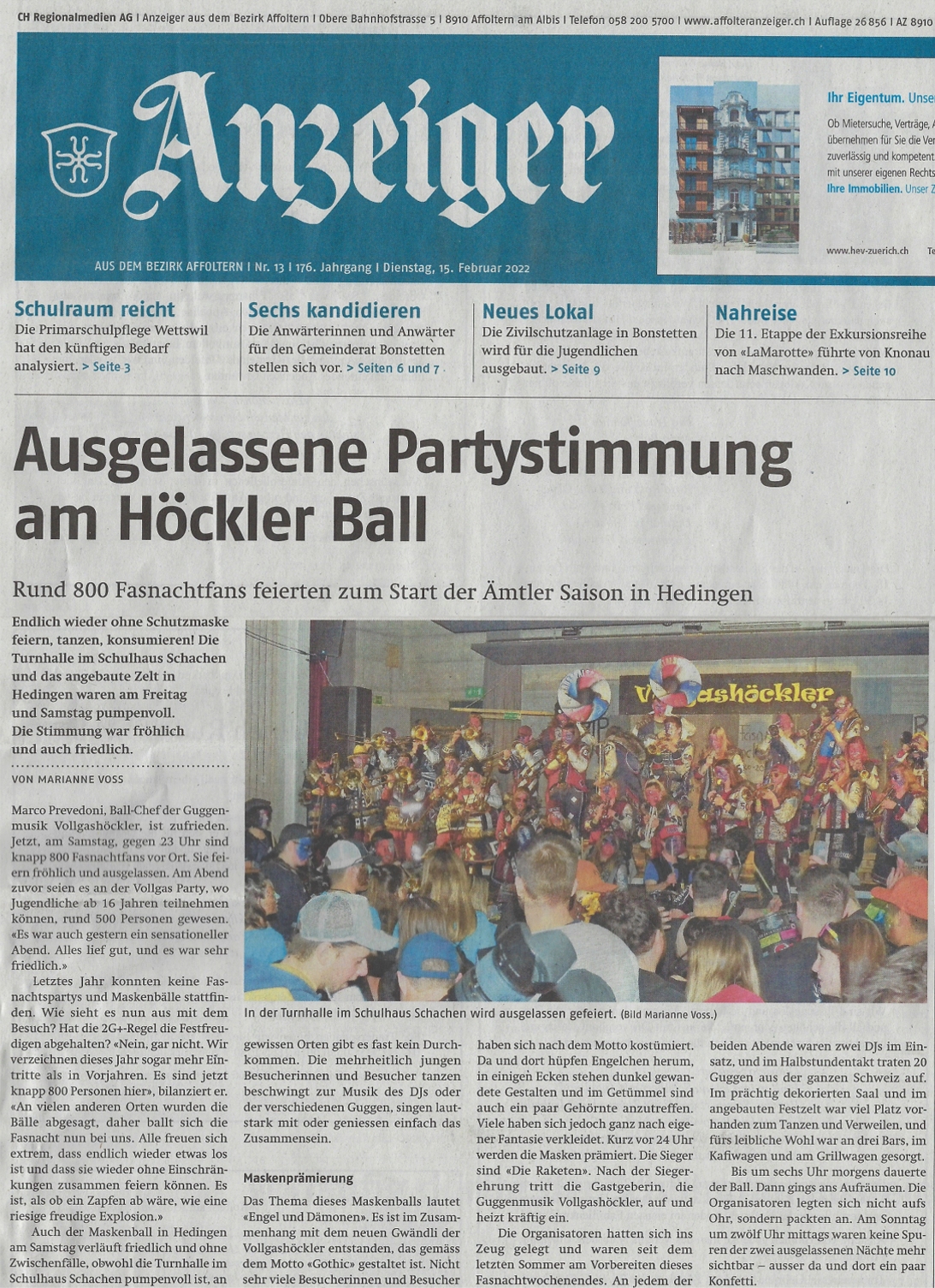 Dienstag, 15. Februar 2022 - Bericht im Anzeiger aus dem Bezirk Affoltern